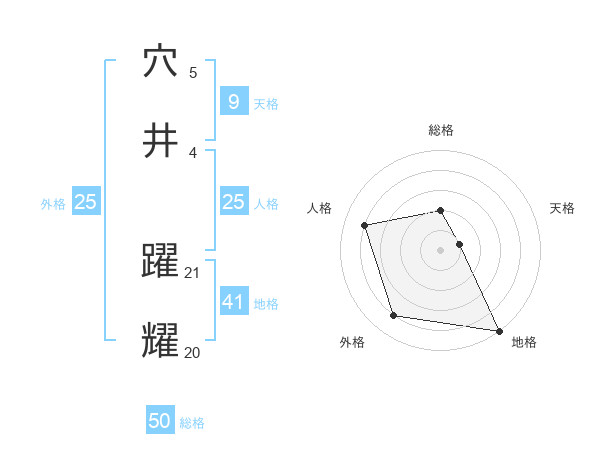 穴井 躍耀さんを姓名の画数から五運を鑑定