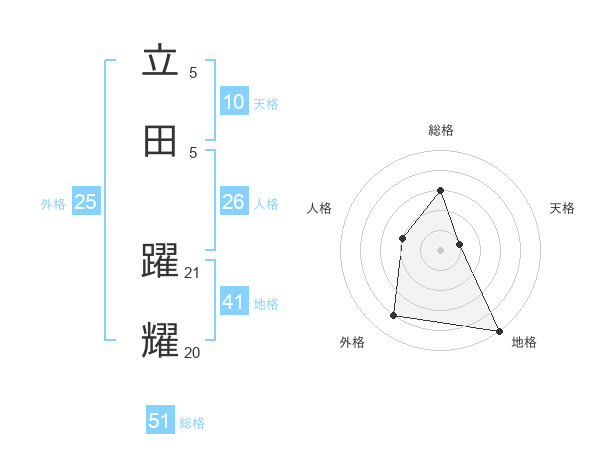 立田 躍耀さんの総格は51画の3点!