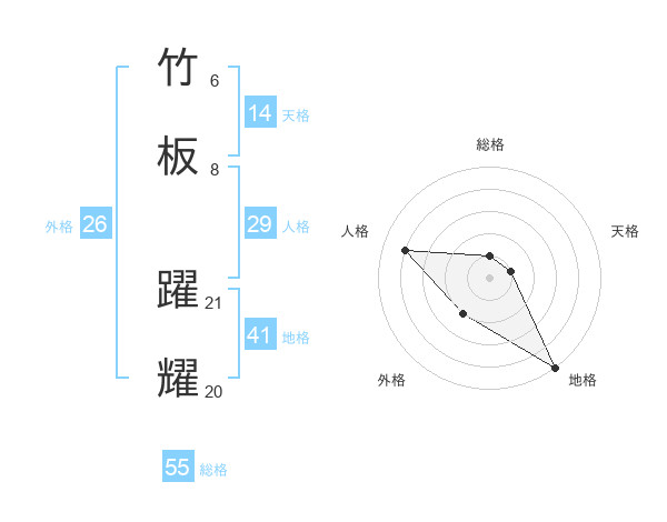 竹板 躍耀さんの総格は55画の1点!