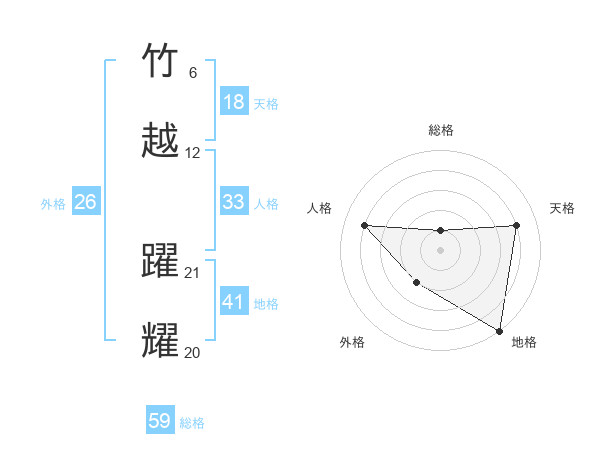 竹越 躍耀さんの地格は41画の5点!