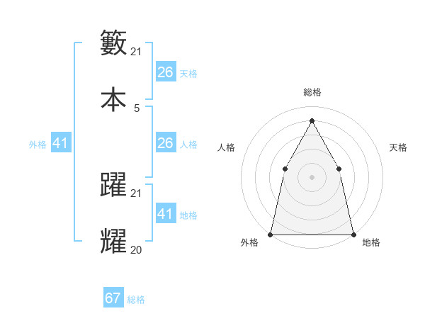 籔本 躍耀さんの総格は67画の4点!