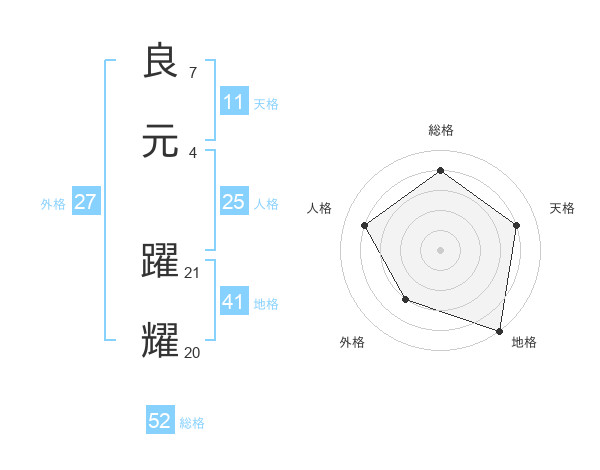 良元 躍耀さんを姓名の画数から五運を鑑定