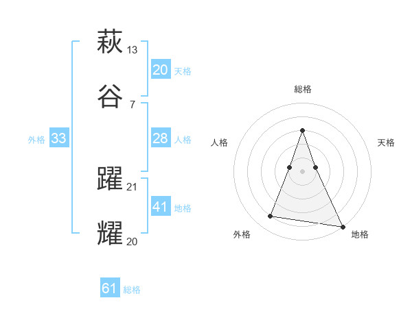 萩谷 躍耀さんの総格は61画の3点!