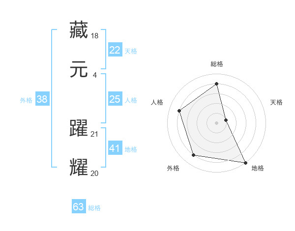 藏元 躍耀さんの総格は63画の4点!