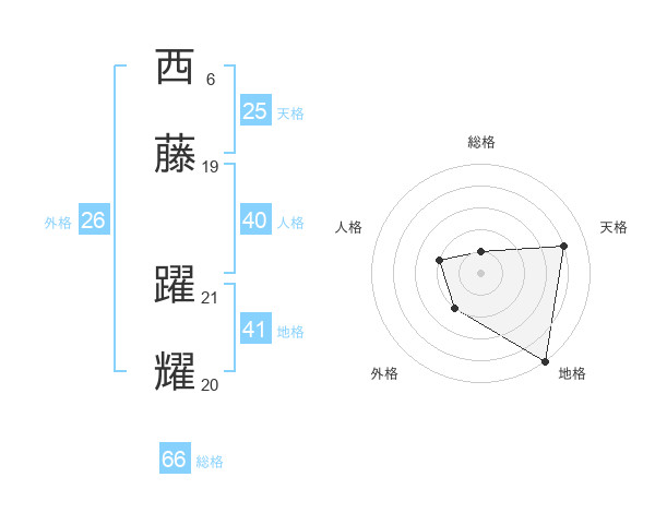 西藤 躍耀さんの総格は66画の1点!