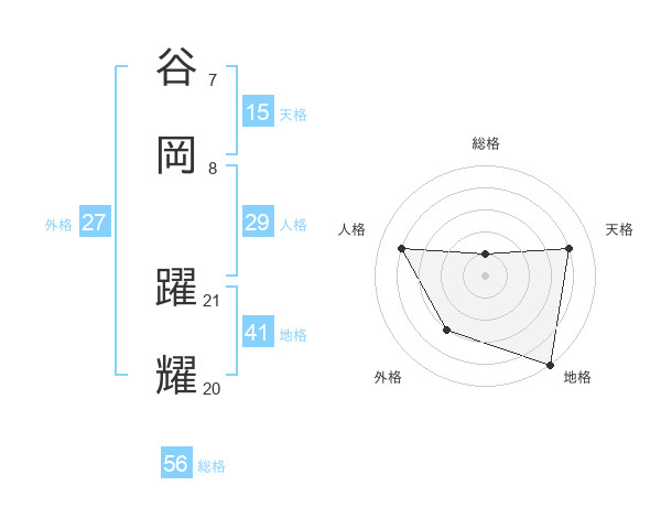 谷岡 躍耀さんの総格は56画の1点!