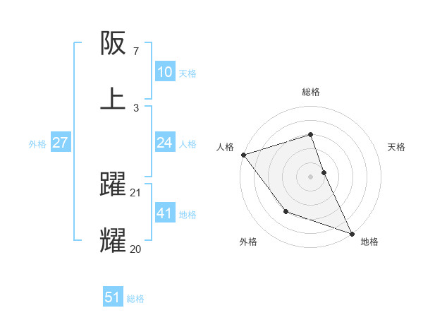 阪上 躍耀さんの総格は51画の3点!