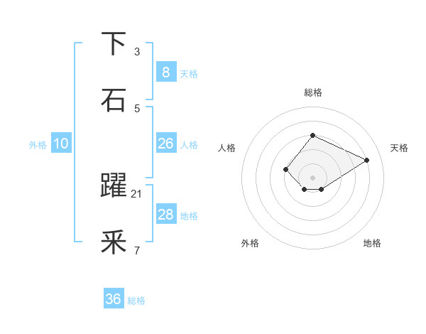 下石 躍釆さんを姓名の画数から五運を鑑定