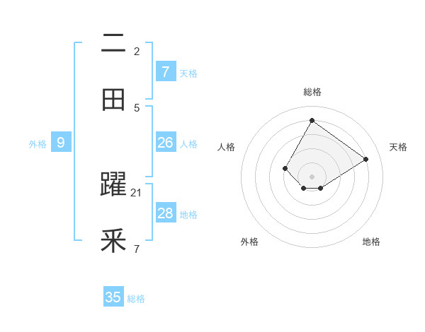 二田 躍釆さんを姓名の画数から五運を鑑定