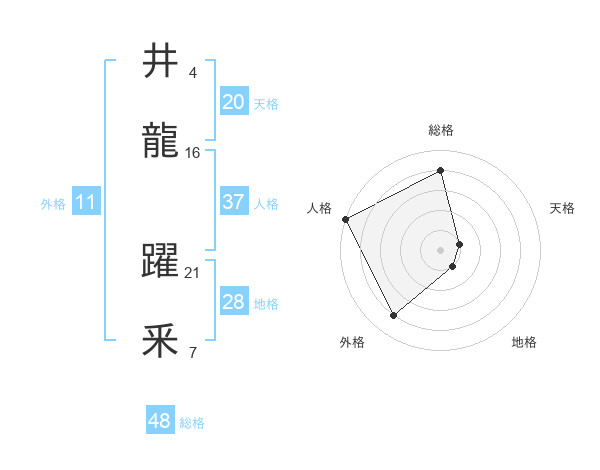 井龍 躍釆さんを姓名の画数から五運を鑑定