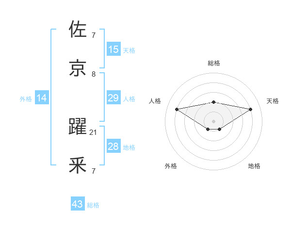佐京 躍釆さんの天格は15画の4点!