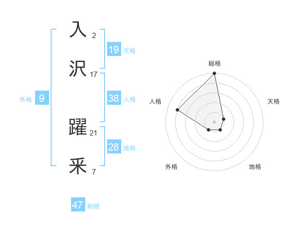 入沢 躍釆さんの総格は47画の5点!