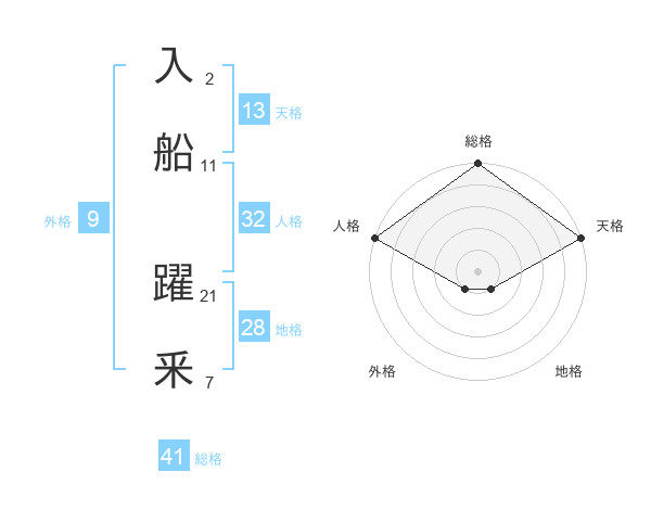 入船 躍釆さんの総格は41画の5点!