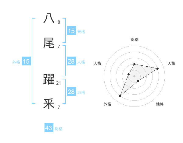 八尾 躍釆さんの天格は15画の4点!