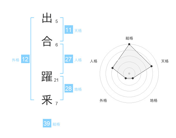 出合 躍釆さんを姓名の画数から五運を鑑定