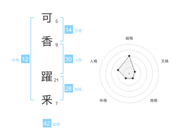 可香 躍釆さんの総格は42画の3点!