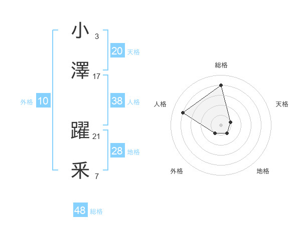 小澤 躍釆さんを姓名の画数から五運を鑑定