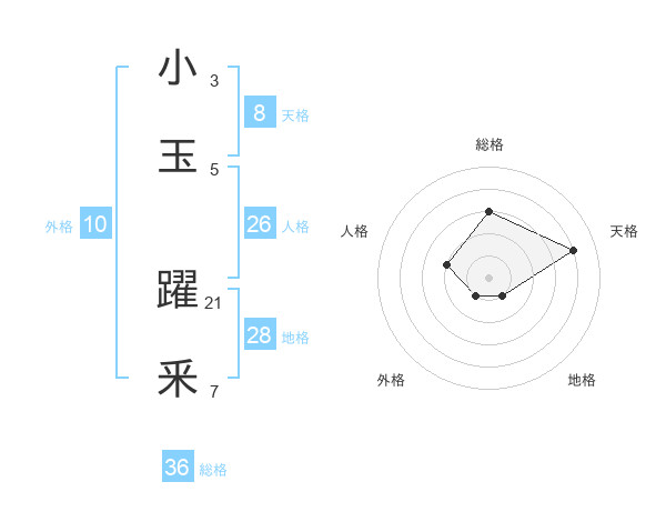 小玉 躍釆さんを姓名の画数から五運を鑑定