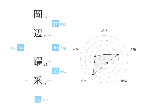 岡辺 躍釆さんを姓名の画数から五運を鑑定