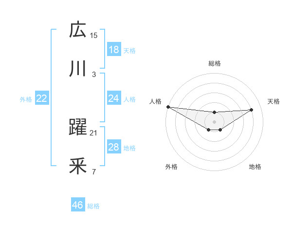 広川 躍釆さんの天格は18画の4点!