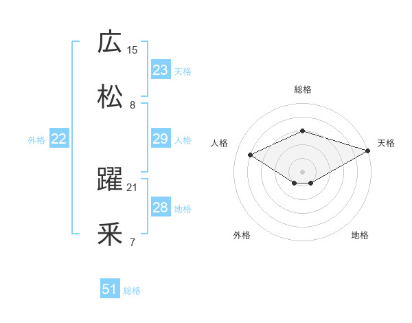 広松 躍釆さんを姓名の画数から五運を鑑定