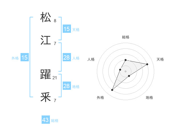 松江 躍釆さんの天格は15画の4点!