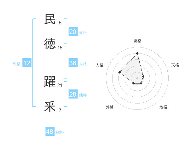 民徳 躍釆さんを姓名の画数から五運を鑑定