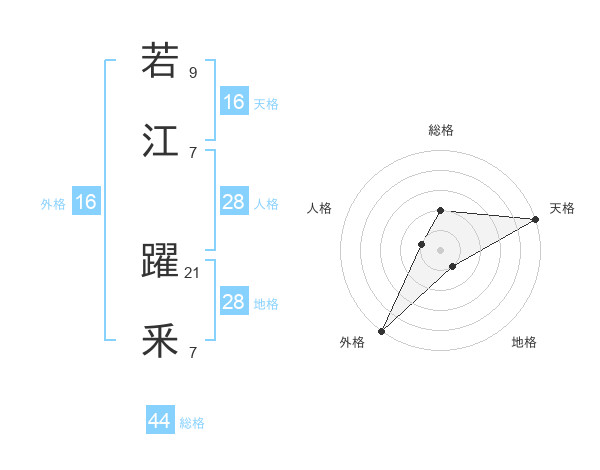 若江 躍釆さんの天格は16画の5点!