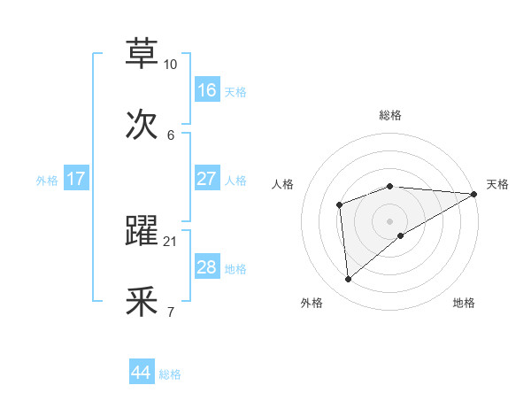 草次 躍釆さんの天格は16画の5点!