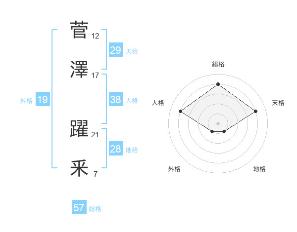 菅澤 躍釆さんを姓名の画数から五運を鑑定