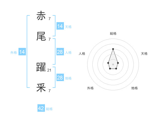 赤尾 躍釆さんを姓名の画数から五運を鑑定