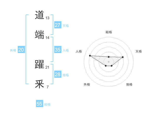 道端 躍釆さんの総格は55画の1点!