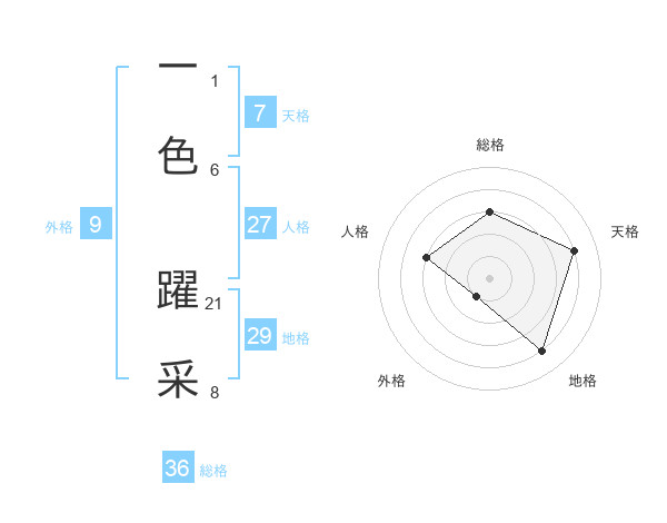 一色 躍采さんの地格は29画の4点!