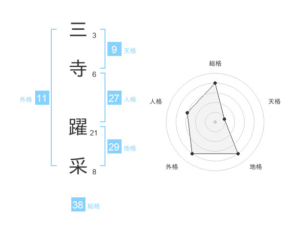 三寺 躍采さんの総格は38画の4点!