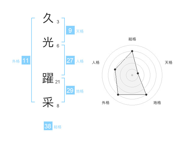 久光 躍采さんの総格は38画の4点!