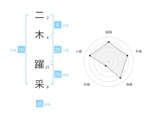 二木 躍采さんの総格は35画の4点!