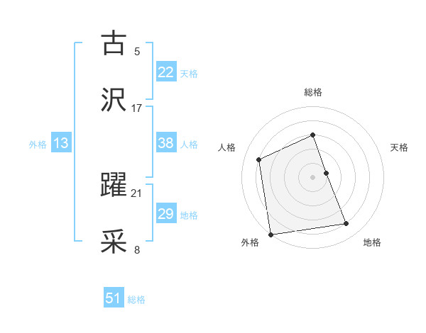 古沢 躍采さんの総格は51画の3点!