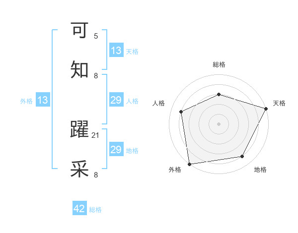 可知 躍采さんの天格は13画の5点!