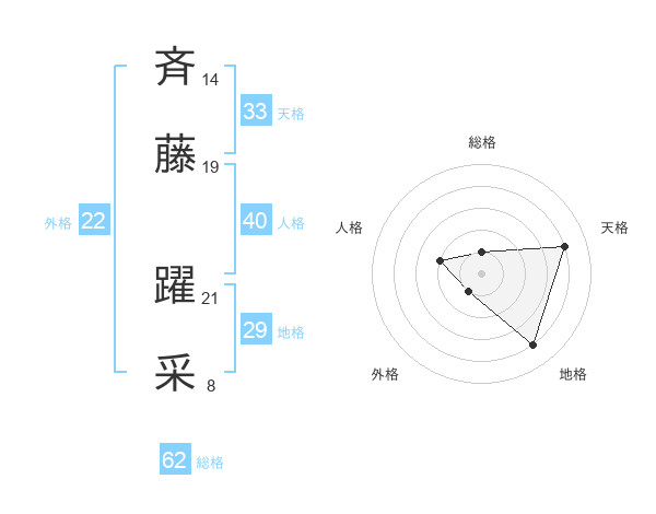 斉藤 躍采さんを姓名の画数から五運を鑑定