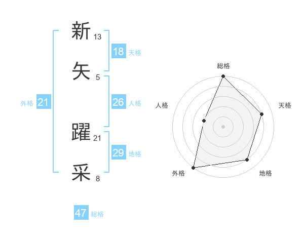 新矢 躍采さんを姓名の画数から五運を鑑定
