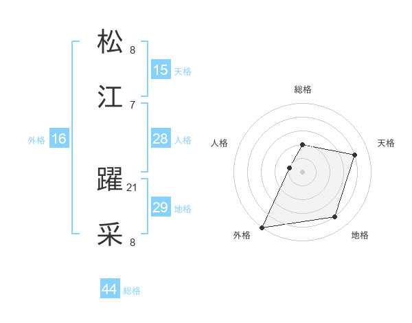 松江 躍采さんの天格は15画の4点!