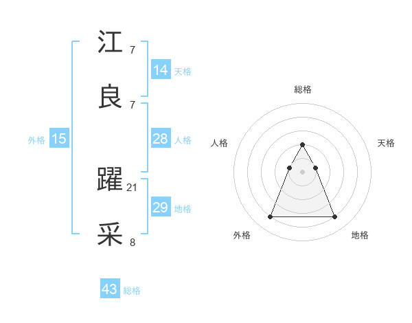 江良 躍采さんの総格は43画の2点!