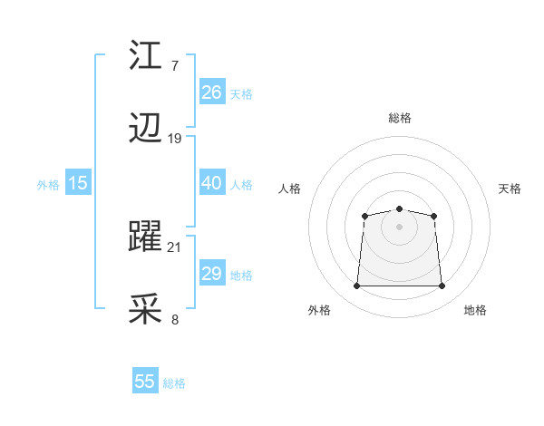江辺 躍采さんの総格は55画の1点!