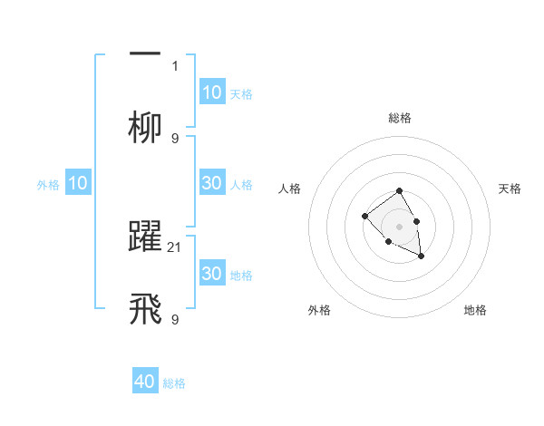 一柳 躍飛さんを姓名の画数から五運を鑑定