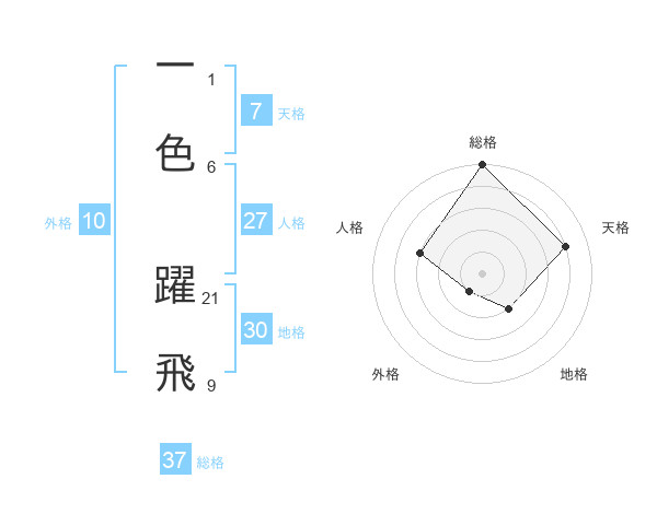 一色 躍飛さんを姓名の画数から五運を鑑定