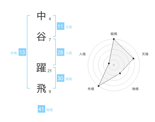 中谷 躍飛さんを姓名の画数から五運を鑑定