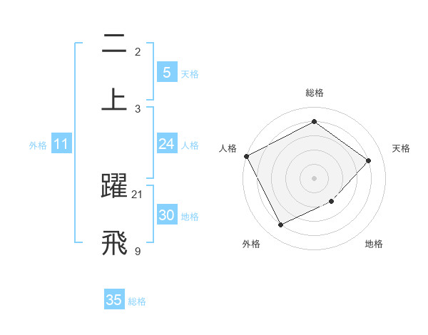 二上 躍飛さんを姓名の画数から五運を鑑定