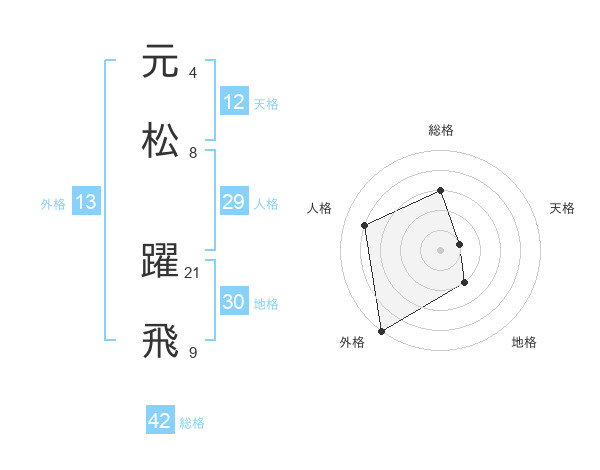 元松 躍飛さんを姓名の画数から五運を鑑定