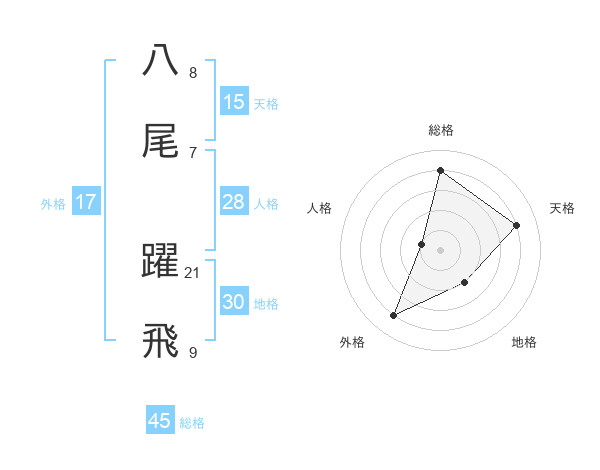 八尾 躍飛さんの天格は15画の4点!