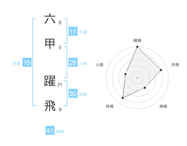 六甲 躍飛さんの総格は41画の5点!